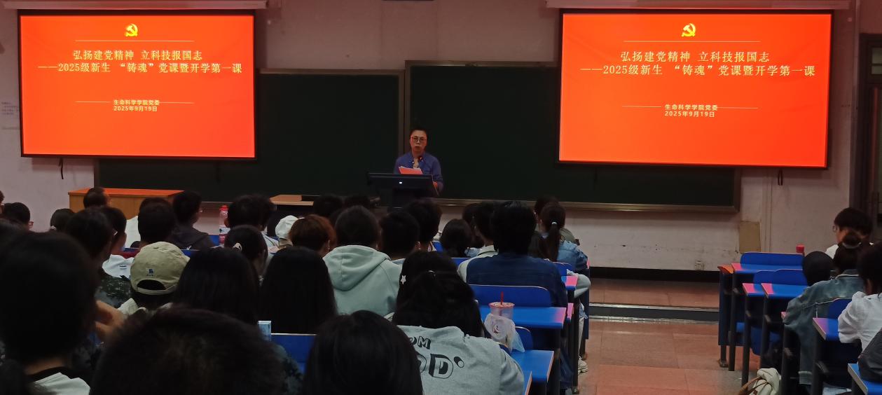 为进一步加强2025级新生对党的认识,筑牢理想信念根基,引领新生扣好入党“第一粒扣子”,激发同学们的入党积极性和主动性。2025年9月19日,生命科学学院党委开展2025级新生党课。学院党委书记王金海、学院党委副书记金笛、组织员于博洋以及2025级全体新生参加会议,活动由学院党委副书记金笛老师主持。